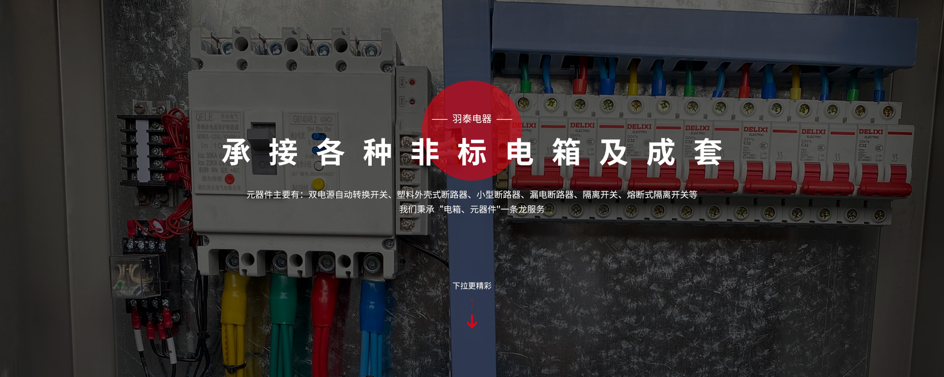 本公司坐落于人杰地靈,“中國制造之都“浙江省臺州市-黃巖。專注工業(yè)電氣領(lǐng)域,是一家集科研、生產(chǎn)、銷售為一體的較全方面型電氣企業(yè)。主要生產(chǎn):低壓成套配電箱、配電柜、電表箱、動力箱、照明箱、工地臨時箱、設(shè)備控制箱,以及各種元器件。元器件主要有:雙電源自動轉(zhuǎn)換開關(guān)、塑料外殼式斷路器、小型斷路器、漏電斷路器;隔離開關(guān)、熔斷式隔離開關(guān)等,公司產(chǎn)品嚴格按照國家CQC,CCC標準執(zhí)行,滿足于家庭與工業(yè)要求。我們秉承“電箱、元器件"一條龍服務(wù)。